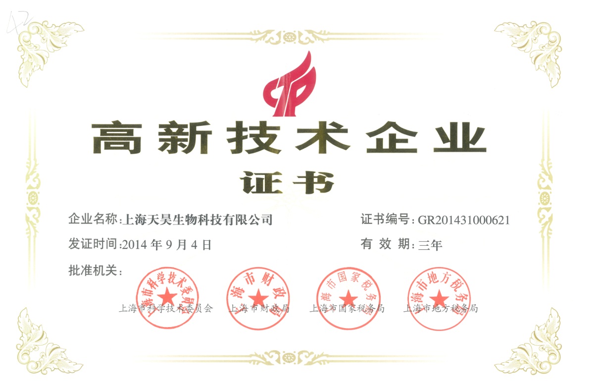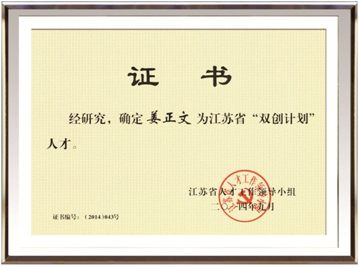 ![]() 2014.12天昊生物總經(jīng)理姜正文博士入選“金雞湖雙百人才計劃-海外高層次領(lǐng)軍人才” ![]() 2014.09天昊生物獲得“高新技術(shù)企業(yè)”稱號 ![]() 2014.09天昊生物總經(jīng)理姜正文博士入選“江蘇省雙創(chuàng)計劃人才 ” ![]() 2014.01 天昊生物總經(jīng)理姜正文博士入選第十批“千人計劃”名單 ![]() |