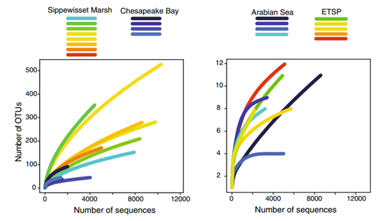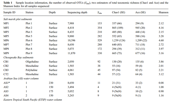 共計(jì)21個樣本,海洋缺氧區(qū)(ODZs)水樣4個阿拉伯海水樣AS和5個東部熱帶南太平洋水樣ETSP;沿海沉積物樣品:4個切薩皮克灣沉積物樣品CB和8個鹽沼地沉積物樣品MP 研究背景: