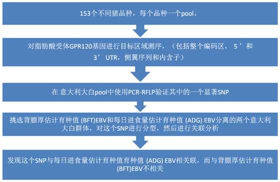 參考文獻:Next Generation Semiconductor Based-Sequencing of a Nutrigenetics Target Gene (GPR120) and Association with Growth Rate in Italian Large White Pigs. Luca Fontanesi et al. 2015, Animal Biotechnology.