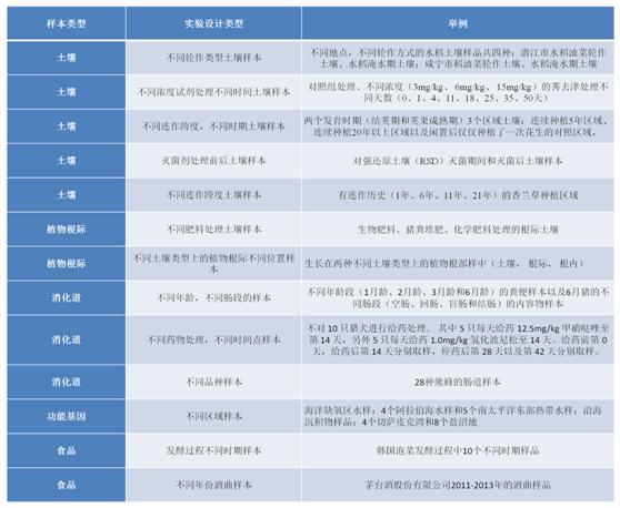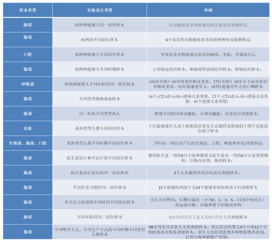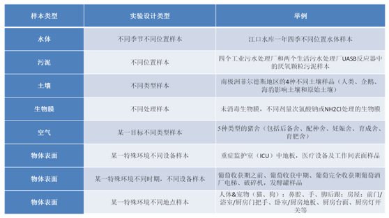 Q10:現(xiàn)在是個環(huán)境樣本就能進行微生物多樣性研究,但是怎么在前期實驗對象組合設計上更有新意? A: 較早微生物多樣性研究的實驗對象組合只是簡單的病例/對照樣本,現(xiàn)在實驗對象組合上已經(jīng)向復雜的方向發(fā)展,通過下面的表格就一目了然了。 微生物多樣性與健康