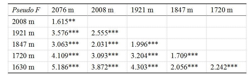 Table S3沿海拔梯度變化內(nèi)生真菌組成的差異分析