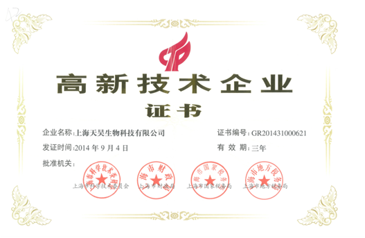 熱烈祝賀上海天昊生物科技有限公司于2014年9月獲得高新技術(shù)企業(yè)稱號(hào)。高新技術(shù)企業(yè)是指在《國家重點(diǎn)支持的高新技術(shù)領(lǐng)域》內(nèi),持續(xù)進(jìn)行研究開發(fā)與技術(shù)成果轉(zhuǎn)化,形成企業(yè)核心自主知識(shí)產(chǎn)權(quán),并以此為基礎(chǔ)開展經(jīng)營活動(dòng),在中國境內(nèi)(不包括港、澳、臺(tái)地區(qū))注冊(cè)一年以上的居民企業(yè)。該稱號(hào)由上海市科技委員會(huì)、上海市財(cái)政局、上海市國家稅務(wù)局和上海市地方稅務(wù)局聯(lián)合頒發(fā),為期三年。