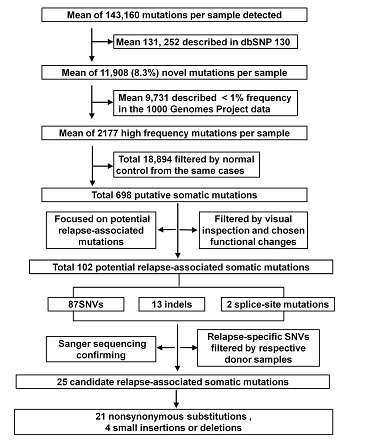 研究目的:采用縱向研究策略,利用全外顯子組測序技術和FastTarget目的區(qū)域富集測序技術相結合,解析費城染色體陰性成人急性B淋巴細胞白血病在異基因造血干細胞移植后復發(fā)的相關體細胞基因突變。(體細胞基因突變包括:診斷時檢測到的體細胞突變;復發(fā)時新發(fā)的體細胞突變;診斷到復發(fā)一直存在的體細胞突變)