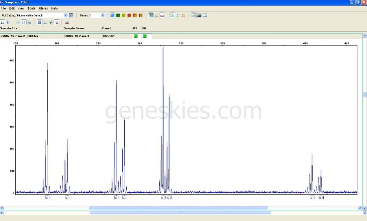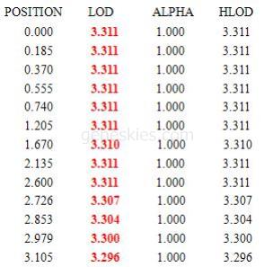 COL1A1基因附近的4個(gè)STR位點(diǎn)分型圖: 連鎖分析結(jié)果: |
