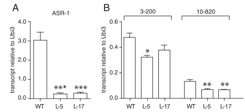 圖四:靶基因的表達直接受ASR1調(diào)控
