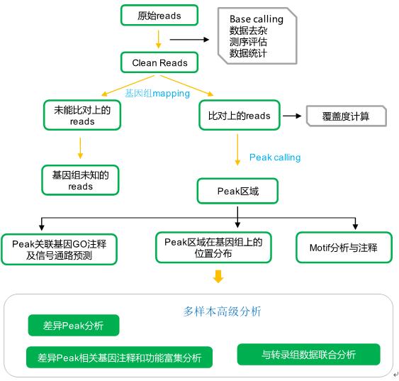 實驗流程 A. ChIP-seq建庫測序流程 ![]() B. 數(shù)據(jù)分析流程 ![]()